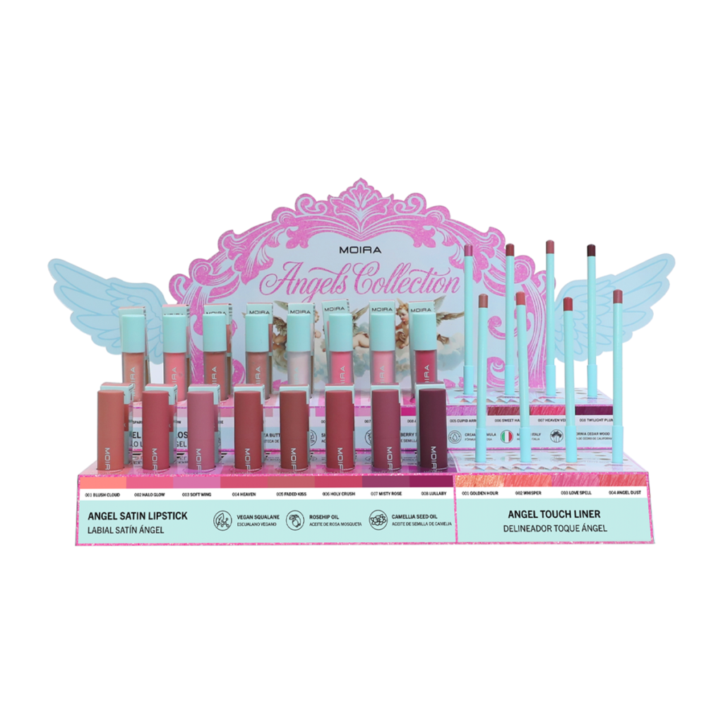 EXHIBIDOR DE CARTON + SET DE ANGEL COLLECTION ATL 8 TONOS 6 PZAS POR TONO AGG/ASL 8 TONOS 3 PZAS X TONO = 96 + 24 TESTER